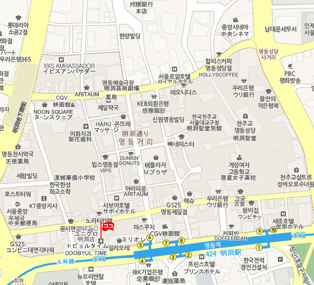 地下鉄4号線明洞駅(myeong-dong.424)5番出口徒歩2分